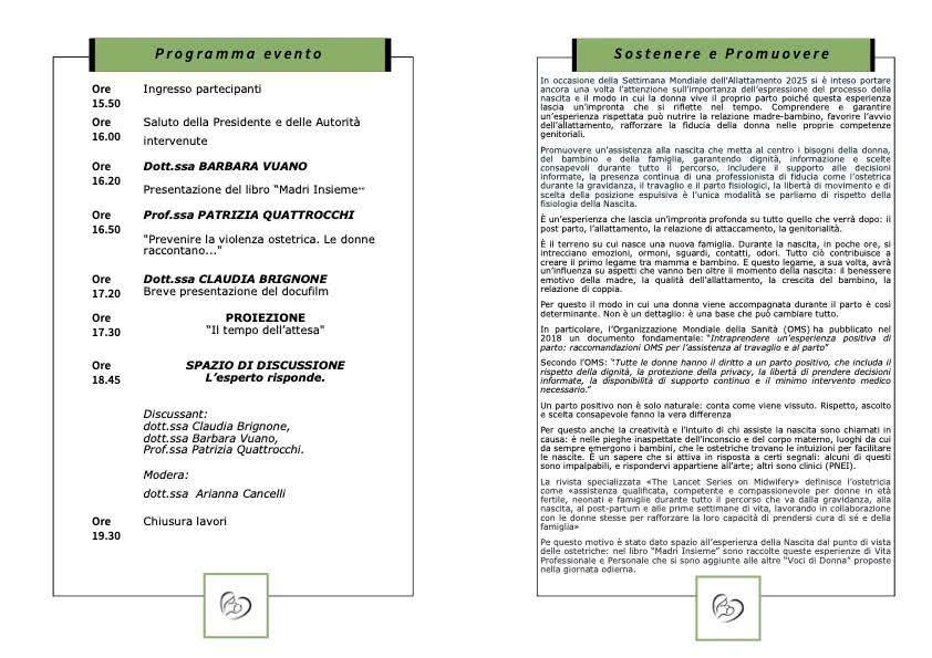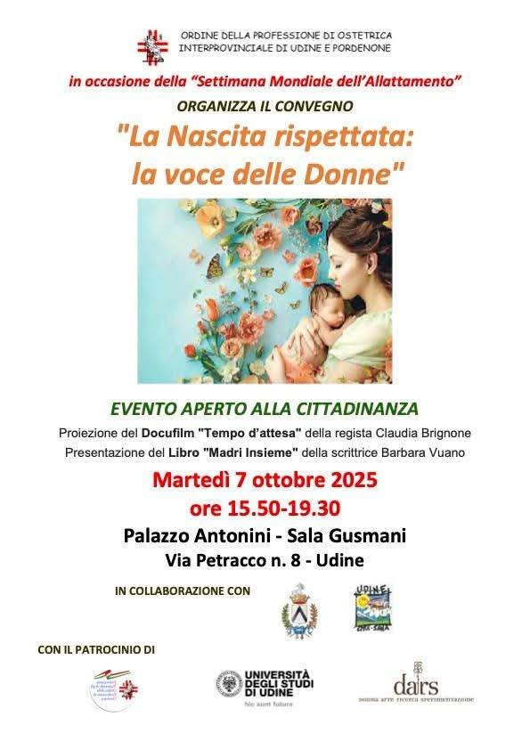 Claudia Brignone (regista del pluripremiato docufilm “Il Tempo dell’Attesa” e Barbara Vuano (autrice del libro “Madri Insieme”) presenteranno le esperienze di donne e ostetriche, dialogando con Patrizia Quattrocchi (Responsabile scientifica del progetto internazionale International Platform on Obstetric Violence-IPOV RESPECTFULCARE finanziato dall’Unione Europea) e Patrizia Milià (Presidente dell’Ordine della professione ostetrica di Udine e Pordenone). Modererà il dibattito la Arianna Cancelli.
