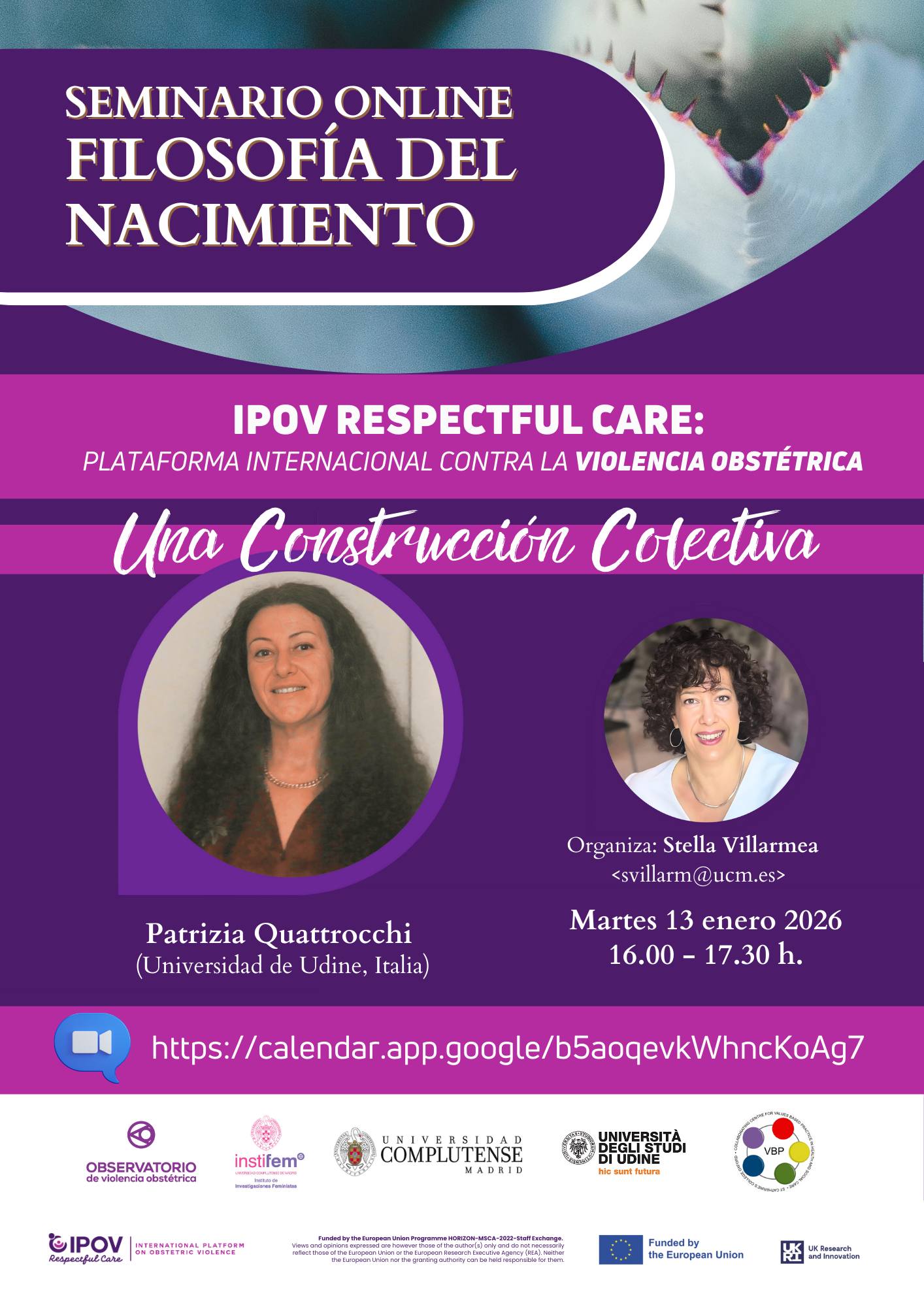 Martedì 13 gennaio 2026, nell'ambito di una conferenza online in diretta da Madrid, con inizio alle ore 16.00, la prof.ssa Patrizia Quattrocchi, docente in discipline demoetnoantropologiche, presso il DIUM, presenterà gli sviluppi del Progetto IPOV-International Platform on Obstetric Violence finanziato dall’Unione Europea (Horizon MSCA-StaffExchange) e di cui è responsabile scientifica.